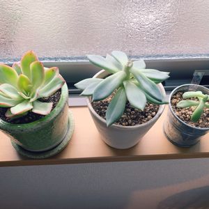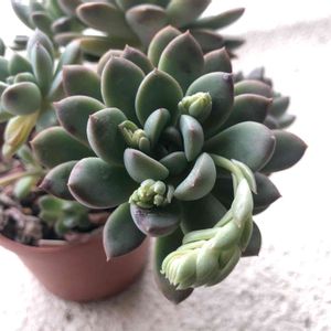 Pachyveria Claire 今年3月にお迎えした子です☘️ なんの変化も見られず、 我が家では地味な存在でしたが、 最近ちょっとだけ、ふっくらしてきました✨ Echeveriaプリドニスと Pachyphytum oviferum(星美人?)の 属間交配種だとのこと🌟 だからこの子はPachyveria属なんだと納得🤗