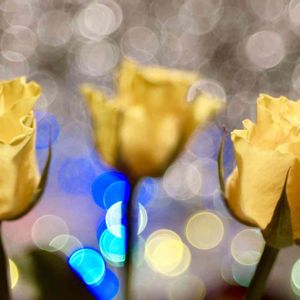 黄薔薇 100均イルミにクシャクシャアルミフォイル