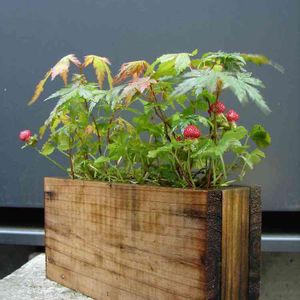 20150131これは去年の5月くらいかな?今はもう解体作業中で入れない国立競技場公園のモミジの種を採取して、芽だしの若モミジを寄せ植えしたもの。素朴なハンドメイドの杉板ベースと野イチゴの下草がアクセント。