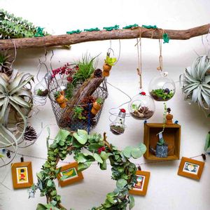 ダイニングテーブルのグリーンはチランジアです。