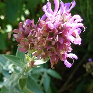 サルビアクレべランディ (クレベラントセージ) セージ?サルビア?どちらの名前も合ってるみたい 薄いブルー紫の花がリング状に段々に咲く(ダンキクみたい?)シルバーの葉も素敵で、いい香り
