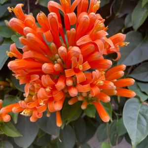 ✨ こちらも開花中〜! ✨ 連投、失礼します💦 我が家のカエンカズラです 漢字だと火焔葛と書きます ビタミンカラーのオレンジが鮮やかです あまり出回ってない品種なのか、育ててみたい!と思ってから、探して探して探しまくり、やっと見付けて、挿し木から育ててきた花です 無事に咲いてくれました! でも植物情報とか見ると… 開花時期はもう少し寒くなってきてからなんですよねえ… この夏が猛暑過ぎて、この時期で寒さを感じてしまったのだろうか ま、元気に咲き誇っているので良し!とします!👍