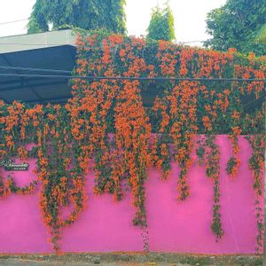 今の時期沖縄のあちらこちらで みられる🧡カエンカズラ🧡 生垣やコンクリートの壁がこの色の 花で飾られ圧巻です🧡💚🧡💚🌿🌿 ネットより 和名は「火炎葛」からきており、花の群れ咲く様が炎のように見えることからつけられた。 ノウゼンカズラ科 カエンカズラ属 原産地:ブラジル南部