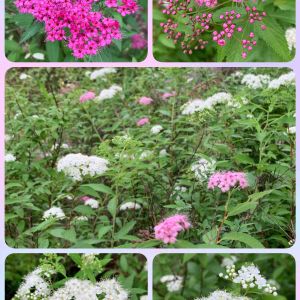 シモツケ 白🤍、ピンク💕、濃いピンク💗 みんな一緒に見ることできて嬉しい😆 バラ科シモツケ属