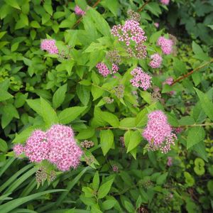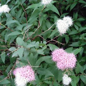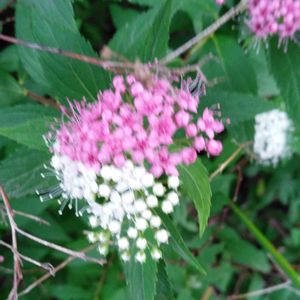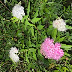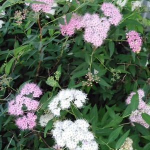 白い花から 咲き始め、 後からピンク色の 花が咲き始めた 源平シモツケ 今年は、茂っています。