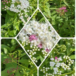源平シモツケ バラ科 シモツケ属 シモツケの源平咲きです🤍💗🤍 白い中にちらほらとピンク色が混ざっていたり白だけピンクだけの咲き方だったりと楽しいです。 蕾の時から白かピンクかがわかります🤍💗🤍