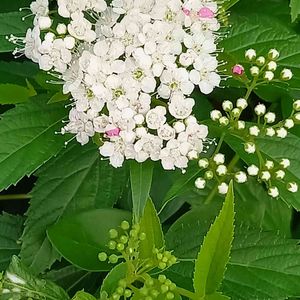 ゲンペイシモツケ バラ科 シモツケ属 今年初めて薄いピンクのゲンペイシモツケが咲きました🎶 記念に生けてみました🤍💗🤍💗🤍