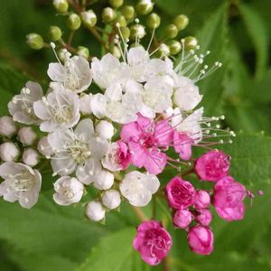 源平シモツケ バラ科 シモツケ属 今年も大好きな源平シモツケの花が咲き始めました🤍💕 お花それぞれ色のバランスが違っていて このくらいの🤍💕のバランスで咲くのが好きです🎶