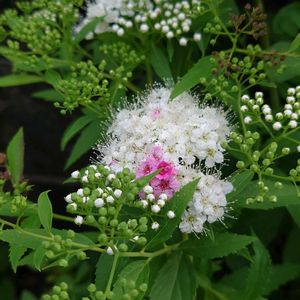 🪴シモツケ 3種 今年は成長して、やっと濃い🩷になりました 同じく白も少し大きくなりました 去年お迎えした 小さな源平シモツケも根付き、蕾を持ってます