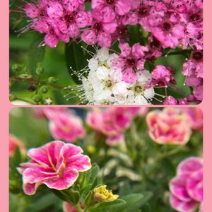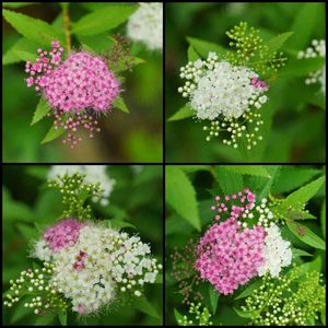おはようございます☂️ 我が家の💖源平シモツケ🤍 お気をつけてお出かけください🍀 小さな苗からお迎えしました 白ばかり咲いていましたがピンク色も咲いてきました なかなか咲き揃いませんのでコラージュ🤍💖