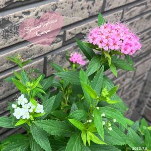 シモツケ 散歩🦮🚶🏻♀️途中の公園にて 鮮やかな明るいピンクとシロと桃色に咲き分ける源平シモツケが一緒に植えてあり、シロ、桃色、濃いピンクと楽しめます💕 バラ科シモツケ属