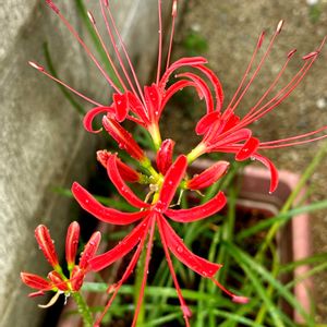 ウチ🏠の庭の赤いお花達❤️ ①②2年前に実家から球根を取ってプランターに植えていた彼岸花❤️がようやく咲きました。去年も遅めでしたが、猛暑のせいなのか?今年もお彼岸には間に合いませんでした。 唯一無二の、この凛とした姿❤️がカッコいい👍⤴️ ③赤い千日紅🔴とキャットテール🐈❤️…そういえば同じ鉢に植えてました😅💦 ④葉っぱ🌿の濃淡💚🤍に浮き立っているアイビーゼラニウムの赤いお花❤️もどんどん咲いてきました。 ⑤コレは職場からの帰りに寄ったスーパーのお花売り場にあったハイビスカス🧡『ハロウィンハイビスカス』🎃だって❣️笑😆 綺麗な色🧡だったので撮らせてもらいました🤳✨ ハロウィン🎃👻カラーのオレンジ🧡で中輪サイズでした。 こちら今日はどんよりした天気☁️で時々雨☔も降りました。 でも嘘のようにすっかり涼しくなり、過ごしやすくなりました👍✨ 明日から秋祭り。明日,明後日の晩には子供達が家🏠を廻ってお菓子を取りに来ます。 7日が本祭りで、お神輿も出て賑やかになります。なんといっても仕事がお休みなのが嬉しい⤴️🎶