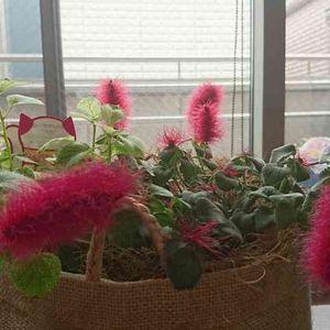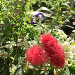ご近所の鉢植えの赤花。 まるでブラシのようです。