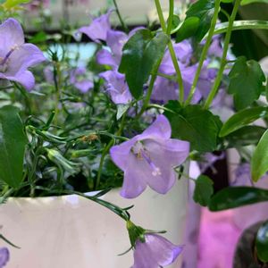 優しい色合いに惹かれてお迎えした、カンパニュラメリーベル (キキョウ科ホタルブクロ属)です。 説明書では、夏にも強く初秋まで次々と開花する、とのこと・・ とりあえず、窓辺に置いています❣️