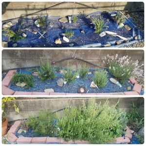 上から4月→6月→9月のハーブ花壇。 途中枯れかけの鉢植えラベンダーとローズマリーを入れ替えました。 ラベンダーの育ちが良すぎてぎゅうぎゅうですね💧 植え直してあげたい…