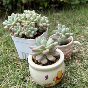 右側と手前の多肉はなかなか根付かず大きくならない。 左側のは根付いてるのでちゃんと成長してる。この差☹️ 根は出てるから梅雨までにしっかり根を張ってもらわないと💦