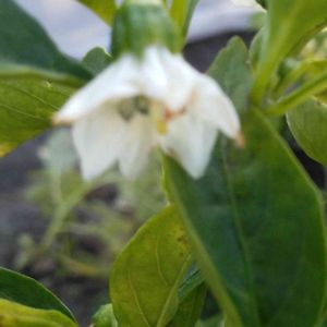 お疲れ様です😃 シシトウの花です。 半分くらい開いてきました😊 毎年、シシトウとピーマンをお迎えしてますが 見た目や花がほぼ同じなので タグを付けないと 実が出来るまで どっちがシシトウで どっちがピーマンか 分からなくなります😅💦 まさに、昨年がそうでした🤣