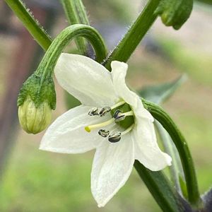 シシトウ(獅子唐)の花。 ナス科トウガラシ属。 まだまだかわいい花が咲いてます💕