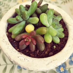 木立ちして伸びすぎて、暴れた多肉ちゃんも好きだったけど、スカスカになってたので寄せ直しました٩(^‿^)۶💛 左半分つぶつぶ🍇で可愛い❤️