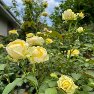🌹バラ🌹 🟡サンライトロマンチカ🟡 淡いクリーム色の房咲きのバラです。 14年前家を建て直し、バラをたくさん育て始めた頃に購入したばらです。 毎年たくさんのバラを四季咲きで咲かせてくれています。 今年は7月の気温が高すぎて、まるで夏薔薇の様なかんじです。 毎日咲くとすぐカットして、なるべく虫害🐝🐛から守っています。 マイガーデン🪴 🏷️水曜ローズショー に参加させていただきます🌹