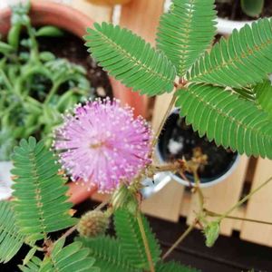 オジギソウ 丸くてピンクの可愛い花が咲きました。