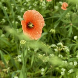 ナガミヒナゲシ バス停の脇に咲いてました 素手で触るとかぶれる事があるそう 小さい子供のいる方は要注意な花です