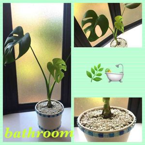 お風呂場緑化計画を思いつき、 第一弾としてJAの園芸コーナーで モンステラを200円で買ってきました😏👍 100均でプラ鉢とリメイク用のガラスタイル も買いました❣️ まだまだこれからどんどん増やすつもりだけど、 今日はお風呂が楽しみだな〜☺️ あとお風呂場で耐えられそうな植物って何だろう?🤔