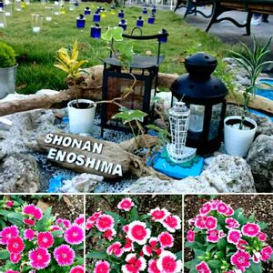 湘南キャンドル (2018.11.4迄) 上…点灯待ちのミニチュアシーキャンドルの写真スポットと芝生のキャンドル❤ 下…ダイアンサス🌼3種。 ↑夜に点灯した写真は「花言葉(江の島)」さん(この投稿のいいね❤1番上にアイコンがあります🌻)の10/30の投稿にあります🌃✴ 素敵なので良かったら御覧ください📷 江の島 サムエル・コッキング苑にて。