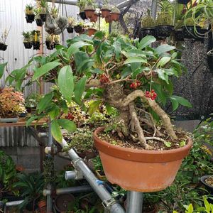 昨年園芸店の片隅に雑草だらけで幹も腐りかけの美男カズラがあり何か気になり買って帰りました。枯れてはいけないので表面の土だけ綺麗にして幹の治療をしていましたが元気になったので植え替えをしました!見事な根張りで楽しみな木になりました!