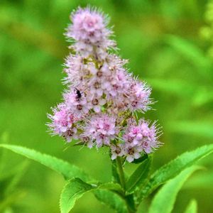 《雨のつくば植物園へちょろっとな 7/7》 ホザキシモツケが咲き始めてました、雄しべがイガのように飛び出ています😊 シモツケですからどこにでもありそうですが、自生では、日光、霧ヶ峰と北海道にしかありません。 戦場ヶ原なんかは大群生ですけどね😆
