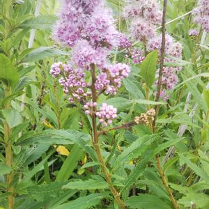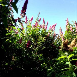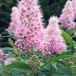 毎日の🐶散歩コースの 公園(陸上競技場)の花壇の🌸 毎年咲いていたんだろうけど… 初めて見ました‼️ 1m弱くらいの丈の この子は誰ですか? ♪♪ 調べました〜〜💜✨ シモツケっぽい花だなぁと思って… 調べたら…判明しました😍❤️ ホザキシモツケ 穂先下野 でした🤗✨✨