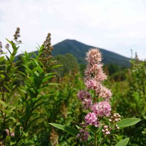 「ホザキシモツケ」 2週間ほど前に撮影。 半分原野のような草むらで目立ったピンク色。 今はほとんど実になってた。