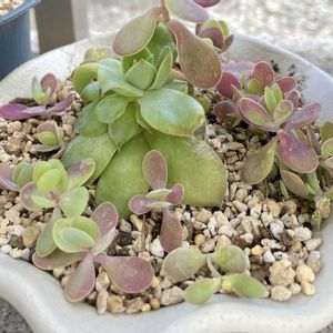 😱💦 油断してた〰︎😭 ①pic:エケベリア・ファンクィーンさん👸 これは火傷を負ってしまったのでしょうか…😢 お盆に雨や曇りの日が続いていたのもあって、遮光ネットは物干し竿にかけてはいたものの、上部のみで、下まで垂れ下げていなかったのです… そして今日まで、日差しが強くても、なんとか大丈夫かなぁ〜?なんて安易に考えてました😭 お気に入りのエケベリアだけにショックも大きく😞 甘かった自分、反省です。。。 ②pic:エケベリア・ルエラさん❤️ 春先だったか、、、ホムセンで救出。 ぷくぷく感はなく痩せてはいますが元気です😊 エッジが赤いのがいいですね❣️ ③pic:ピンクルビー♥️さん ツヤ感が好き🥰 だんだんと締まってきて、赤みが出てきました🤗 ④pic:センペルさんとハオさんの寄せ植え💚 センペルさんが増えてきて嬉しい☺️ まだまだ小さいですが、元気で何より🫶 まだまだ、遮光にも気をつけていないとですねー💦