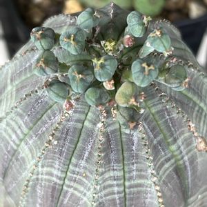 最近まぁるいユーフォルビアさんを よく見かけるなぁ 先日行った園芸店で買う気はなかったのに 複稜のバリダを見つけ狩ってしまった(右下) 複稜持ってるメンバーさんのpic見に行ったら さらに2稜多い😳 うちももっと割れてこーい🤣🙌 そして前からいる焼きオベサ達と 今年初めて花茎がトゲになるか⁉️ 元ツルツルバリダさんと 横はバッキバキなのに何故か頭ツルツルバリダさん 今年は10月くらいまで暑いらしい… みなさんお身体気をつけてください(❁ᴗ͈ˬᴗ͈)