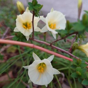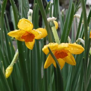 朝方の通り雨に濡れました。やっと咲いた水仙、おんなじ場所での年期ものです。