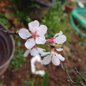 私は枝垂れ桜🌸なんです😁。主が枝を邪魔にして切っちゃうもんだからチンチクリンになってます😁❣️。でも頑張って咲きました。美人さんでしょ‼️✌️。
