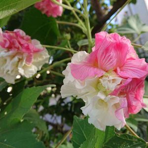 やっと咲いた 酔芙蓉❣️。花形も酔っぱらってる😁。しばらくは楽しめそう🎵。
