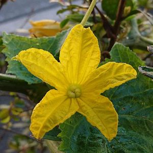 玄関の花壇にミニ胡瓜を植えてみた。一週間程前から収穫出きるまでに❗。ピクルスでとても美味しくいただいています❣️。