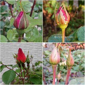 今朝のツボミ❣️。 これから咲く芍薬さんたち。尖ったさんと、丸いさん。色も形もそれぞれ❗。みんなちがって、みんないい‼️。