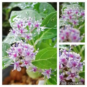 奥多摩小紫陽花 奥多摩地方で発見された山アジサイ系のコアジサイで両性花は青とピンクに咲き分けます。コアジサイより葉が小さい品種で普通のアジサイと異なり、飾り花がなく、小さな粒のような両性花が集まって咲きます。花色は淡青~淡桃から、白となり、花つきがよい品種です。 先日アップしたウサギゴケと一緒に買いました。