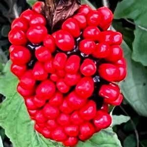 足柄峠の帰り道に、蝮草(まむしぐさ)の実が 道端に毒々しい真っ赤な実を着けてました