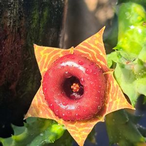 ガガイモ フェルニア ゼブリナ 縞馬 咲いた咲いた〜! つるっつる、つやっつやのお花。 パックンフラワーみたい!とこどもも喜んでます。 嬉しい〜🫰🏻