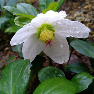 クリスマスローズ もう一本咲きました❀😊 雨粒を纏って、美しい💧