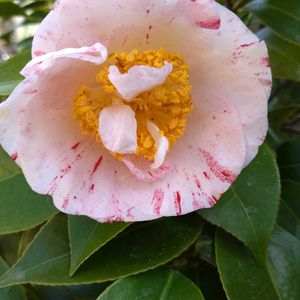 雪椿 小さな苗木から、植えて40年以上、今までとは違う薄いピンク色の花が1輪咲きました🩷 ②いつもの花色です ③蕾もカワイイ ④大きくならないように剪定しながら……育てています🌼