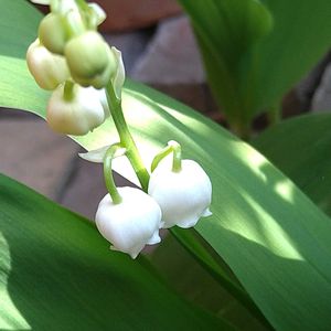 今日の花スズラン ①今朝1本だけ開いてました ②他はまだこんな感じです 他の宿根草も開花が例年より一週間位遅いようです