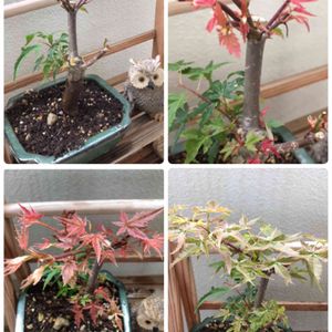 バッサリカットしたのに、また、赤い新芽が出てきました❣️ この盆栽を買ったホームセンターで、同じような盆栽に「イロハモミジ:出猩々(デショウジョウ)」と札が付いていました❣️モミジっぽい盆栽はこれだけしか置いていないのでこらも「出猩々(デショウジョウ)」だと思います🍀 名前が分かると検索してどうすれば良いのか分かる為、良かったです😄🍀