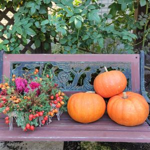 おはようございます🤗 10月31日(金)☁☔17℃予報 🎃🦇🕸ハッピーハロウィン 昨日は秋晴れ🍁🍂お天気良くお出かけ🎃 𓂃𓈒𓂂𓇬 🦇🎃飾り 🏷今日のお花 ❋カボチャ❋ 今年も沢山収穫🎃͙🎃͙🎃✨ 春にも行ったバラ園🌹 秋バラ🌹ハロウィン飾り 案山子さん🎃͙ベンチに🤭 桜の木も紅葉🍁✨✨✨✨ 陽射しを浴びてキラキラ 小松駅前のお花がもりもり 満開綺麗😍°・*:.。.☆✨ 今日は雨降り予報⋆̩*̣̩.゚☂*̣̩⋆̩* 🏷花の金曜日 🏷キラキラ金曜日 10月最終日〜 素敵な一日をお過ごしください