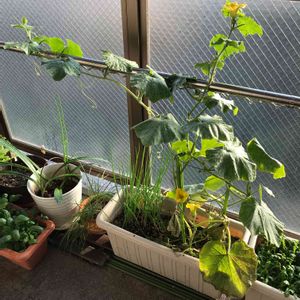 おはようございます☀ 今朝のカボチャですよ〜✨、花が3つ咲いてました🤣✨ ちなみに... 新しくほうれん草も植えました✨