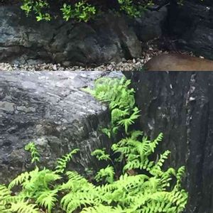 ヤツデの下葉を整理してたら オモトの赤ちゃんがコロニー付きでコロがっていたので、いやコロがしたのは僕かな❓ 鉢にコケとイワヒバとをセットしました。即席盆栽‼️ 万年青(オモト)は、弱ってるので果たして復活してくれるか、乞うご期待。