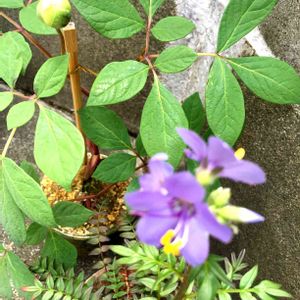 放置されてた祖母の盆栽から花と芽が出て来てた‼️ 庭の水遣りの時、ついでに水をあげてたお陰ですかね❓ 花はテルナミ、葉は見たことあるけど不明。